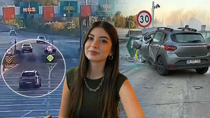Görüntülerde, Beyza Nur Pürmüs'ün (25) kullandığı otomobilin gişelerin önündeki bariyere çarpması yer alıyor.