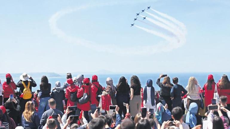 Etkinlikler kapsamında Türk Hava Kuvvetlerinin akrobasi timi Türk Yıldızları, Tarihi Gelibolu Yarımadası’nda gösteri uçuşu gerçekleştirdi. Şehitler Abidesi’nin yer aldığı Hisarlık Tepe’de toplananlar, ekiplerin savaş uçaklarıyla yaptığı gösteriyi ilgiyle takip etti.