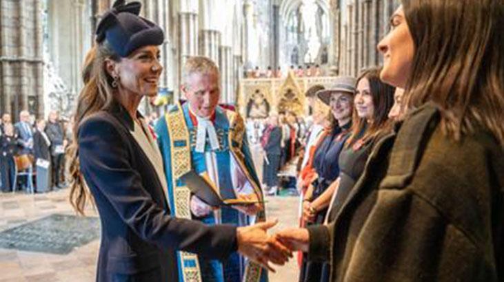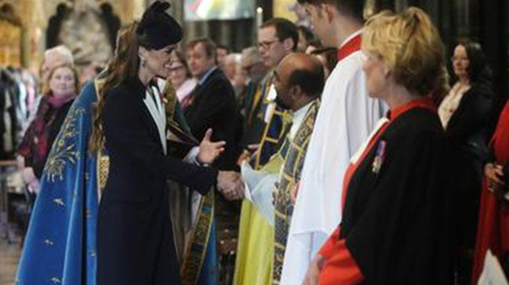 Kate Middleton her zamanki gibi sade ama etkili bir görünüm tercih etti. Baştan sona lacivert tonların hakim olduğu kombin, hem yas atmosferine hem de resmi protokole uyum sağladı. Güçlü omuz detaylarıyla dikkat çeken özel dikim palto, geçmiş yıllarda Givenchy için çalışan Sarah Burton imzası taşıyordu. Moda yorumcuları, keskin hatlı bu tasarımın Kate’in son dönemde tercih ettiği daha güçlü siluet anlayışını yansıttığını yazdı.
