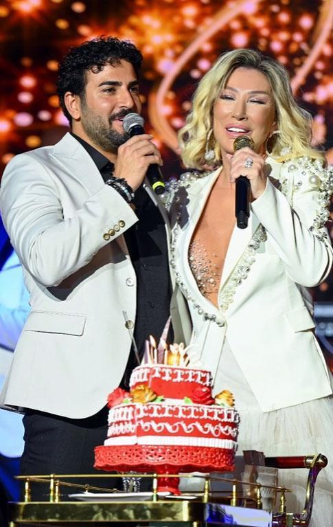 62 yaşındaki Sayan, gelin gibi giyinerek sahneye çıktı. Evliliklerinin 4. yıl dönümünü kutlayan sanatçı herkesi kahkahaya boğdu.