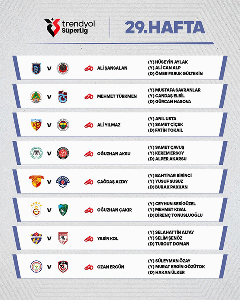 Süper Lig'de 11-12-13 Nisan tarihlerindeki karşılaşmaların hakemleri belli oldu.